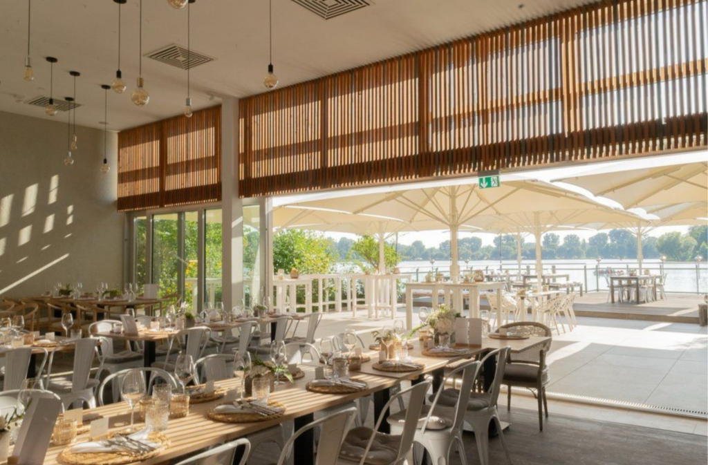 Located directly on the water, the Nuremberg boathouse one Extraordinary location for a wedding with maritime flair. The large terrace offers a breathtaking view of the lake and is perfect for a free wedding ceremony or a champagne reception at sunset. The Mediterranean and modern style of the interior creates a cosy atmosphere for your celebration. With room for around 100 guests, the boathouse offers enough space for a relaxed wedding party. Catering and drinks are included in the offer so that you can concentrate on celebrating.
